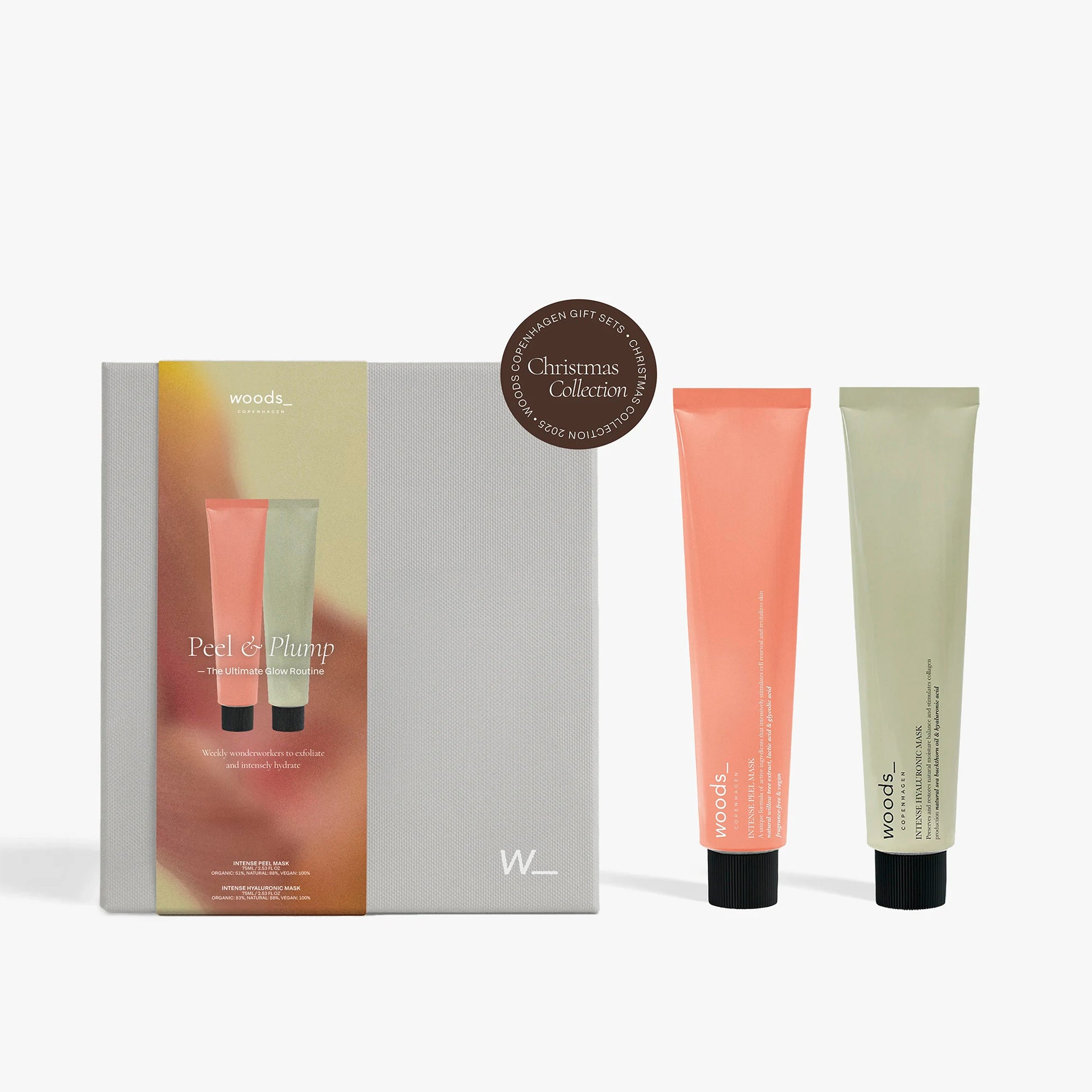 Revitalize dry and dull skin with this enriching gift set. Intense Peel Mask effectively exfoliates the skin's surface thanks to glycolic and lactic acid while promoting the skin's collagen production, leaving a smoother, visibly tightened, and more even-toned complexion with a radiant, renewed glow. Intense Hyaluronic Mask delivers the perfect hydration boost after the treatment and enriches the skin with hyaluronic acid, which can bind 1000 times its own weight in water. When applied to the skin, this renowed ingredient adds and effectively binds hydration – both on the skin's surface and deep within the skin layers. This replenishes the skin from the inside out, leaving it dewy, supple, and plump. Thanks to a highly beneficial combination of high-performance and natural ingredients, these masks ensure a difference that you can feel in a couple of minutes – and long-lasting effects that will visibly improve your skin.