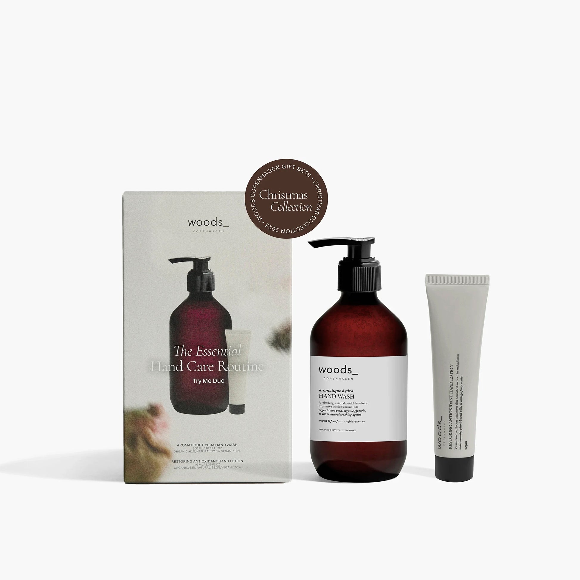 Give hardworking hands the care they deserve. This gift set pampers the skin with the ultimate care, composed of active, natural, and organic ingredients. The hand soap, Aromatique Hydra Hand Wash gently yet effectively cleanses hands thanks to 100% natural washing actives that help retain the skin's natural moisture balance and microbiome (ecosystem). The silky-soft texture and enriching aroma leave hands clean without stripping them, while organic aloe vera creates a protective barrier thanks to antioxidants, vitamins, and enzymes. Organic glycerin binds hydration deep within the skin layers and strengthens the skin's protective defense. The hand soap is, therefore, much more than a simple cleanser – it strengthens the skin with active care with every pump. Follow with Restoring Antioxidant Hand Lotion. This hand lotion treats the skin to intense yet fast-absorbing moisture, encapsulating the nourishing ingredients within the skin. Niacinamide – also known as vitamin B3 – contributes to more even-toned skin and improves the skin's barrier function. Plant-based oils, rich in antioxidants and essential fatty acids, work harmoniously to calm and strengthen the skin so you avoid dry, damaged skin. Both products contain a subtle scent of natural lemon, iris, and rose.